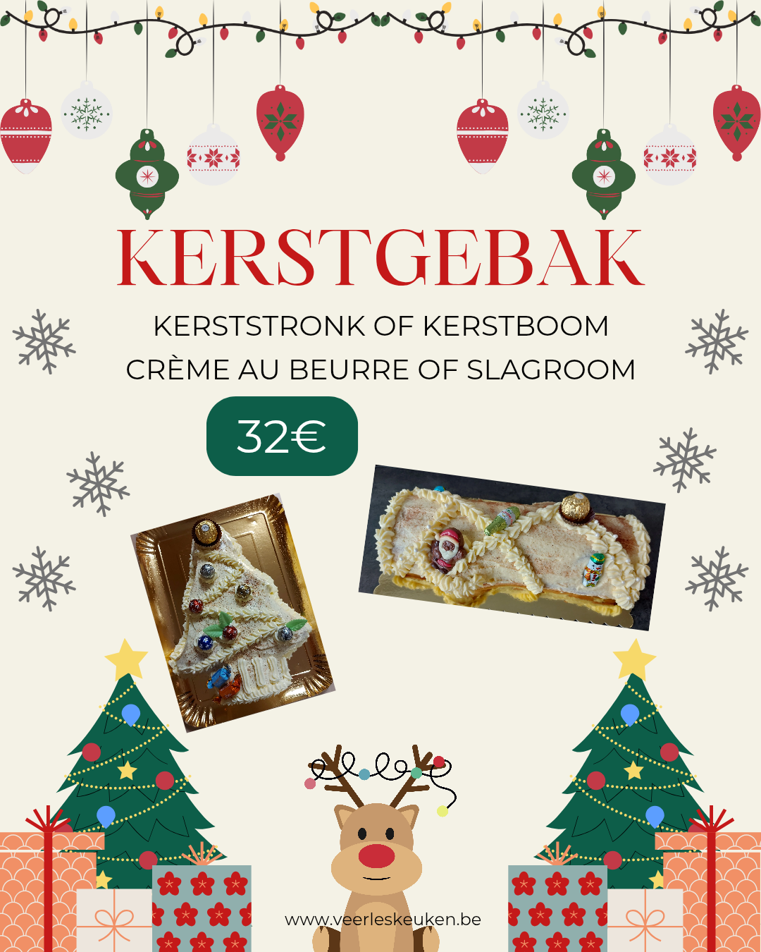 - Kerststronk of kerstboom (8 à 12 stukken)€ 32,00enkel verkrijgbaar met de eindejaarsfeesten